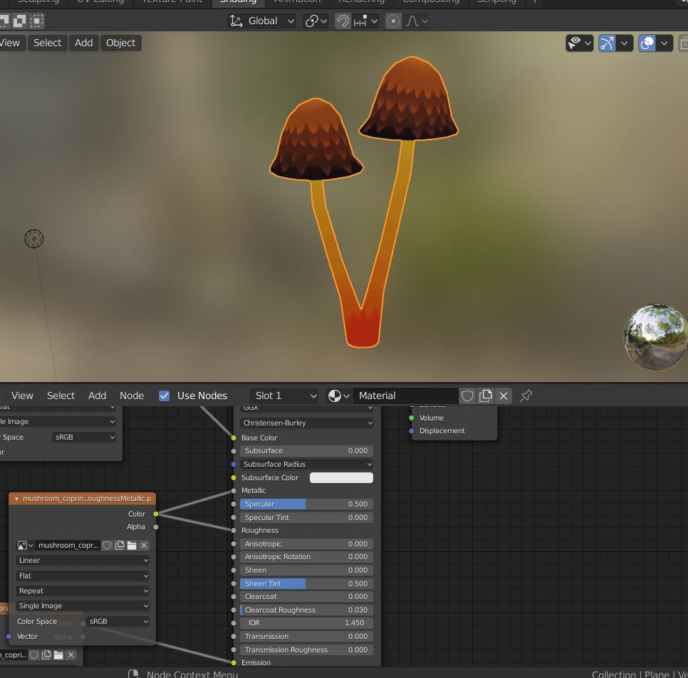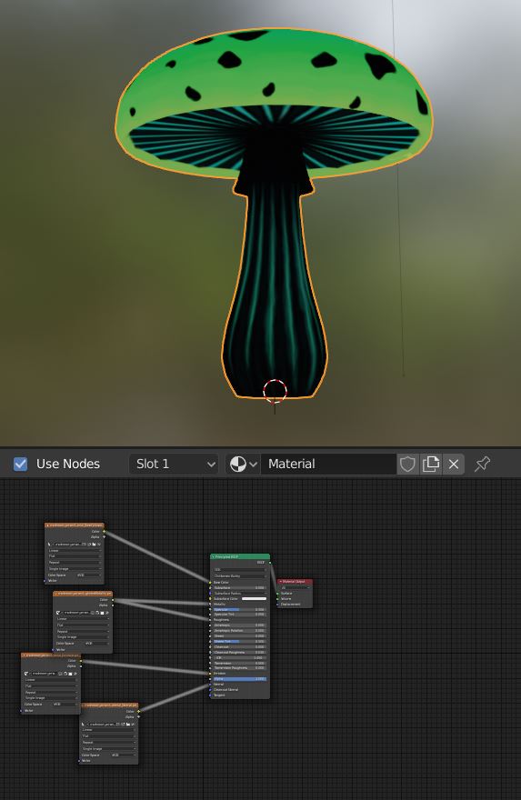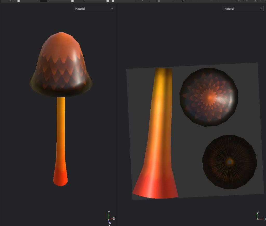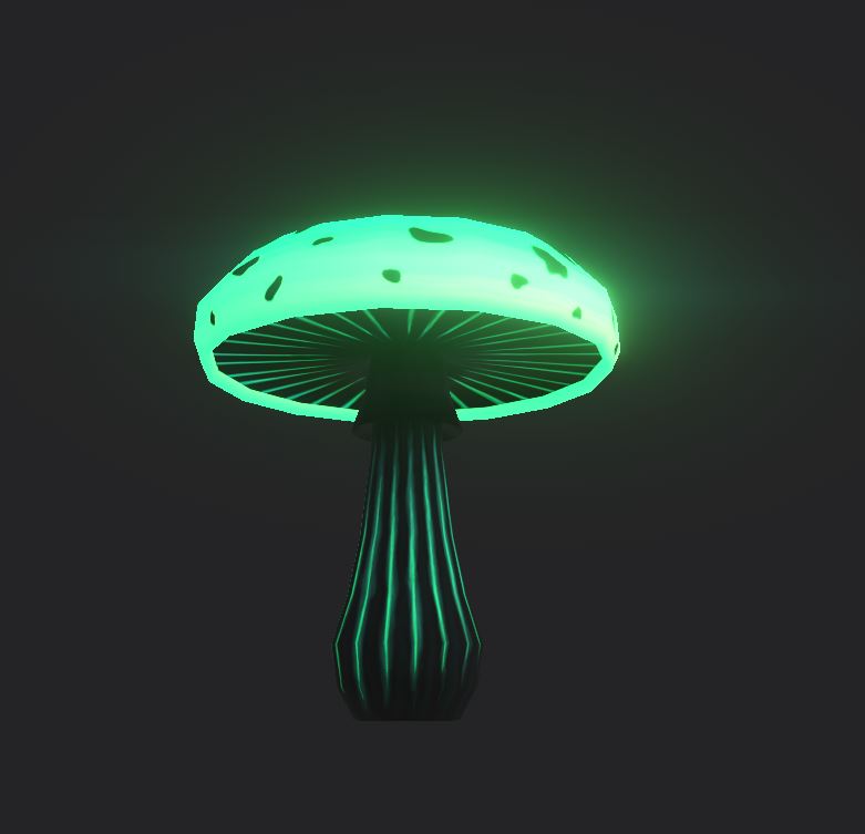 Some glowing mushrooms + toon shader applied in Unreal Engine